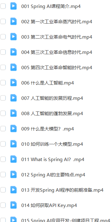 本套课程的内容非常详细并且易于理解,每个知识点都有对应的教学视频,逐步带领学员掌握Spring AI接入人工智能大模型的各种技能。